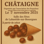 Rôtie de châtaignes des écoles d’Aizac et de Labastide le 7 novembre 2025 à partir de 16h15 salle des fêtes de Labastide